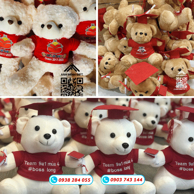 Nếu bạn đang tìm kiếm một món quà bế giảng vừa mang tính biểu tượng, vừa có giá trị marketing bền vững, đừng bỏ qua những chú gấu cử nhân đầy ý nghĩa. Hãy liên hệ ngay với chúng tôi để nhận tư vấn về các mẫu gấu bông in logo trường học mới nhất cho mùa hè năm nay. Anh Minh Gift sẽ giúp bạn tạo nên một lễ bế giảng đáng nhớ, để mỗi chú gấu bông trao đi là một niềm tự hào được thắp sáng.