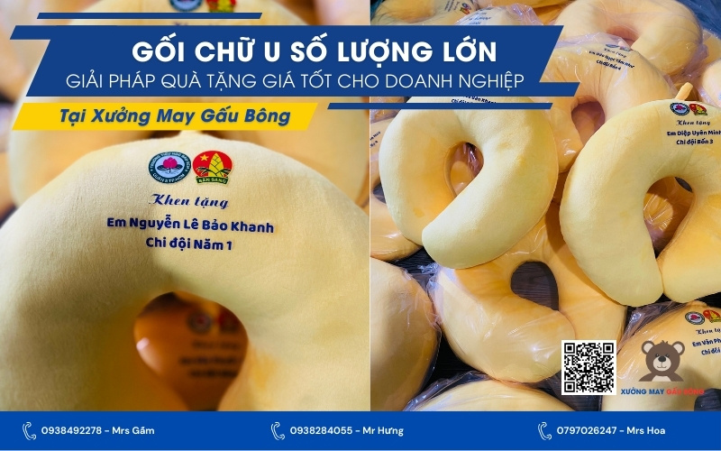 Hãy liên hệ với Xưởng May Gấu Bông ngay hôm nay để được tư vấn chi tiết về phương án quà tặng gối chữ U tối ưu nhất cho doanh nghiệp của bạn!