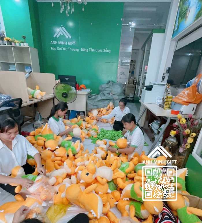 Trên đây là khái quát toàn bộ quy trình sản xuất của xưởng may thú nhồi bông Quà tặng Anh Minh.