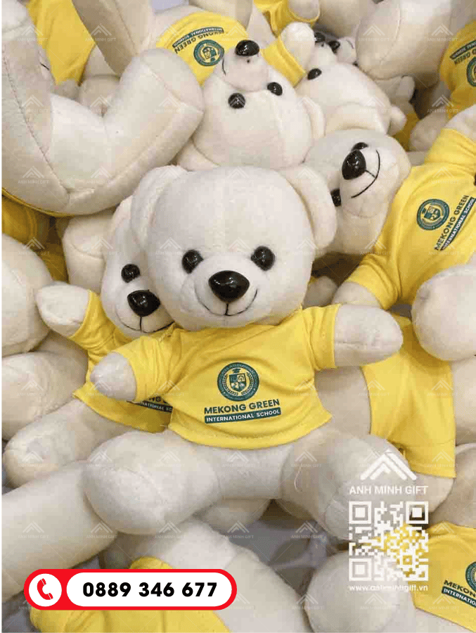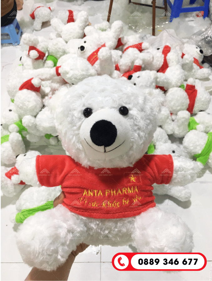 Lợi thế của chúng tôi là mức giá gấu bông in logo giá rẻ nhờ quy trình sản xuất trực tiếp tại xưởng, không qua trung gian. Bên cạnh đó, đội ngũ thiết kế của Anh Minh Gift luôn sẵn sàng hỗ trợ tư vấn mẫu mã, từ gấu bông linh vật (mascot) đến các mẫu gấu bông mặc áo, đeo nơ in logo theo phong cách riêng của từng khách hàng.