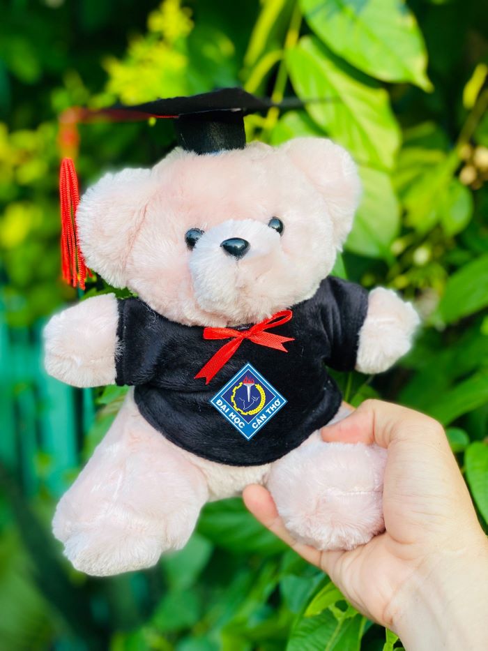 Hình ảnh gấu bông được đội chiếc nón tốt nghiệp và in logo của trường là một biểu tượng thể hiện trọn vẹn sự thành công và nỗ lực của sinh viên và học sinh.