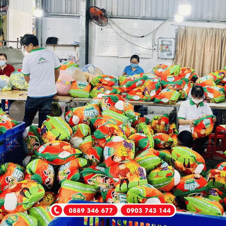 Năng lực sản xuất mạnh mẽ: Quy trình khép kín từ cắt, may đến nhồi bông giúp chúng tôi đáp ứng được các đơn hàng gấp trong thời gian ngắn nhất.